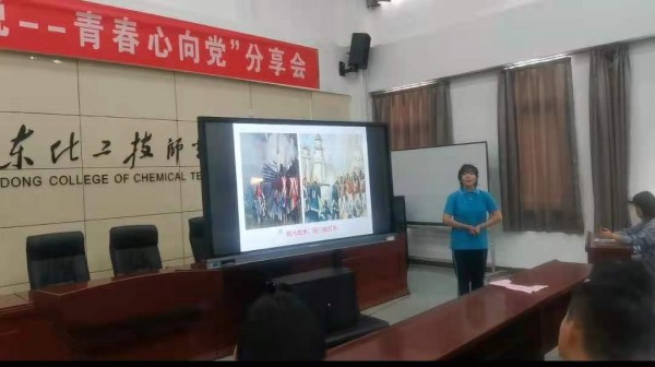 分享会共邀请化学工程系的赵艳艳老师、教学与公共服务系聂志成老师、汽车工程系牛冲老师、经贸系马晓聪老师、机械工程系党玉倩老师、自动化系李荣瑞老师、分析系彭灿灿老师共七位老师以及化学工程系孙慧娟同学、教学与公共服务系何文轩同学、汽车工程系张怿凡同学、经贸系王子同学、机械工程系曹继泉同学、自动化系褚乐乐同学、分析系项东雪同学共七位同学。分享会现场气氛热烈,分享者激情澎湃,使听众沉浸党史。