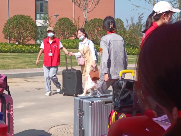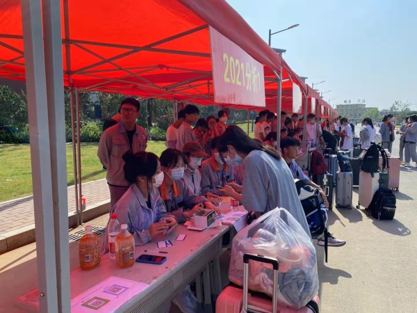 上午7时左右,我系就进入了紧张有序的迎新工作之中。一张张热情的笑脸,一句句亲切的问候,一项项贴心的服务,欢迎远方而来的家人。为了巩固防疫成果,今年的新生报到程序有些特殊,所有新生家长不允许入校。这对新生们及志愿者们来说,都是不小的挑战,为了这份挑战,我系提前挑选出100名志愿者,保证新生报到工作顺利进行。志愿者们穿梭在校门口、班车、报到点、面试点、宿舍,饱满的热情,亲切的笑容,周到的服务迎接着每一位新生。