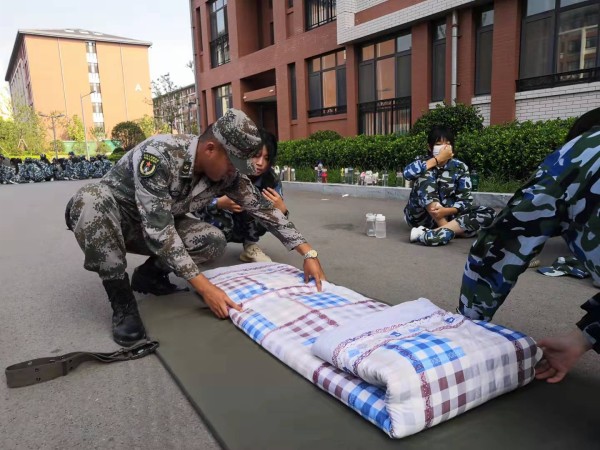 整理的训练中,教官给大家展示“豆腐块”的正确叠法。同学们也都好奇,只是在网络上看到的整齐内务,究竟是如何整理出来的。