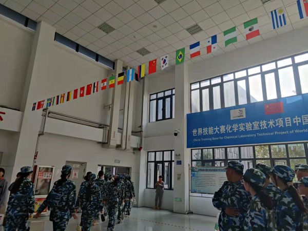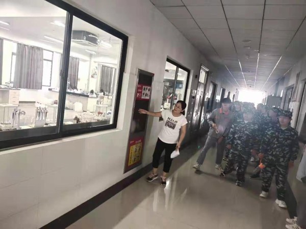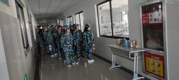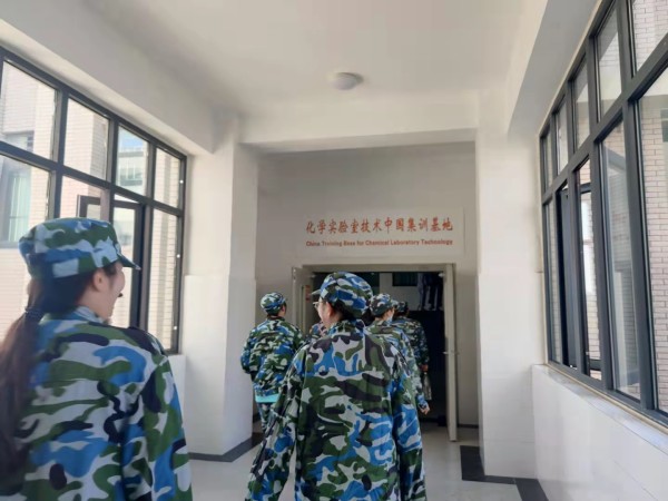 9月15日,在教官和各班班主任的带领下,2021级新生参观校园和分析系实训室。