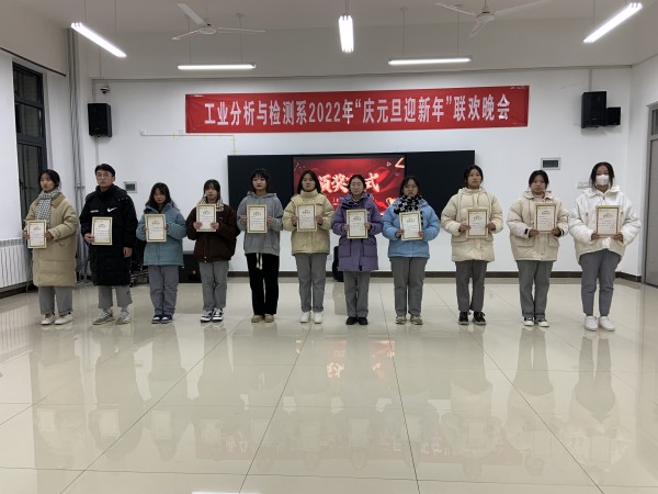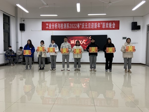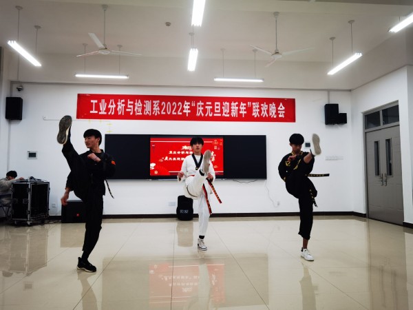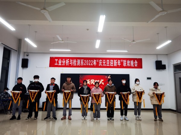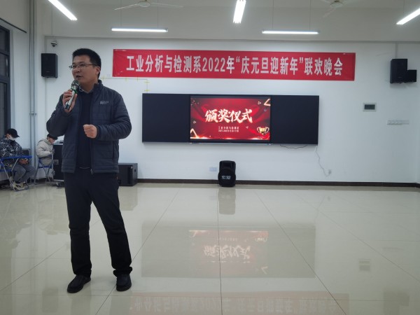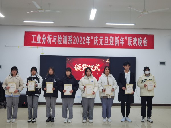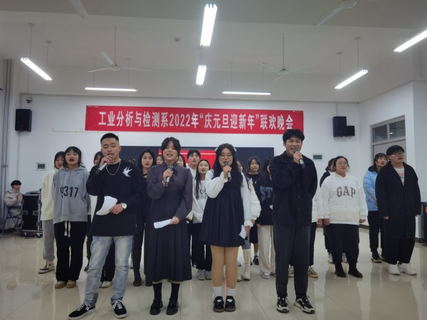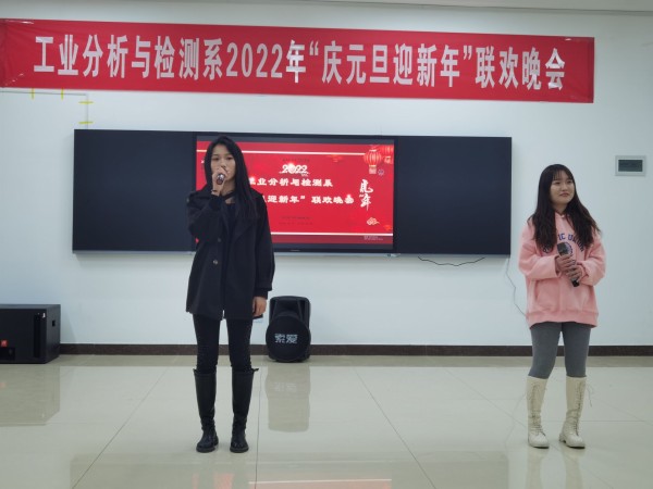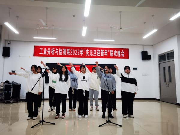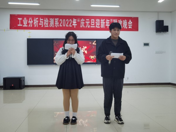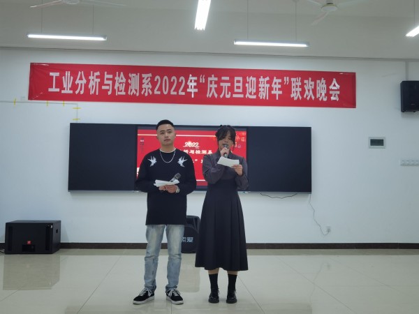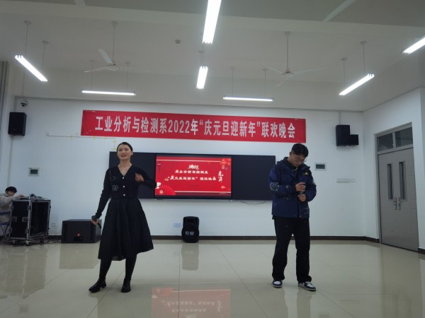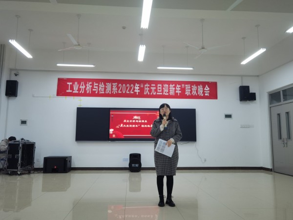 12月26日晚,由工业分析与检测系主办的“庆元旦,迎新年”大型元旦晚会暨活动颁奖晚会在分析楼A420华丽上演。系周书记、系杨主任、白主任与本系师生带着对新的一年美好期盼欢聚一堂,共度良宵。晚会在6:30分准时开演,元旦晚会在杨主任、邢处长的新年祝词中拉开序幕。4位主持人走上舞台,对到场的各位领导、老师、同学们表示热烈的欢迎,随后在全场观众热烈的掌中宣布“庆元旦,迎新年”元旦晚会正式开始。