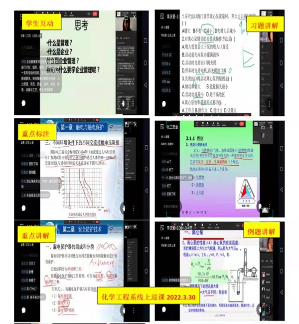 3月24日,化学工程系正式启动线上教学。各任课老师克服困难,精心准备,网课开展的如火如荼、井井有条。巡课小组对系部班级群所有网课逐一展开细致的巡查工作,并对发现的问题及时反馈整改,确保了网课高质量、高标准进行。
