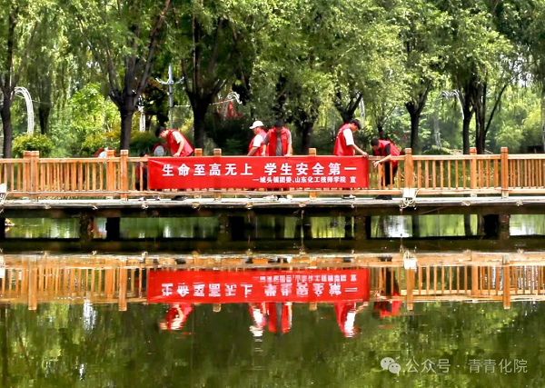 随后,志愿者实践团不畏酷暑进入月亮湾湿地公园,对自然景观区、娱乐设施区等多个重点区域开展防溺水隐患排查,制定整改措施并跟踪落实,确保所有隐患得到及时有效的解决。志愿者们在河流边、池塘边等重点辖区内设置安全警示条幅,悬挂水域警示牌,提高游客的安全意识。同时,对河边玩耍打闹、垂钓以及下河洗澡的危险行为进行劝阻,发放安全科普知识宣传页并讲解预防溺水、溺水自救等知识,用实际行动诠释着责任与担当。