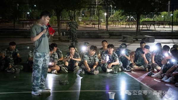 “团结就是力量,团结就是力量。这力量是铁,这力量是钢…”、“保卫黄河,保卫华北,保卫家乡,保卫全中国…”一声声嘹亮的歌声划破了夜晚寂静的校园。在指挥官的指导下,操场上的歌声接连响起,其气势之昂扬,仿佛将人拉到浴火奋战的前线,击破时空的印记,向我们传递着每一个学子的拳拳爱国之心和殷殷豪情。这是军训生活中难忘的青春之音,更是凝聚力量的时代强音!
