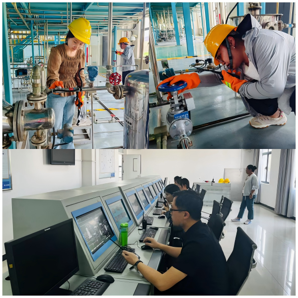 学院投资建设的现代化煤化工煤制甲醇实训装置,高度还原企业生产场景,由现场装置和控制室两部分组成,为师生提供了“教、学、做、评”一体化平台。本次技能比武采用岗位化赛制设计,模拟企业真实岗位分工,设置“现场装置操作”、“控制室操作”、“PID流程图绘制”三大核心岗位任务。参赛教师需在限定时间内完成从设备启停、DCS系统参数调控、装置巡检、工艺流程图规范绘制的全流程操作,全面考验其对化工生产流程的掌握程度、设备操作的熟练度以及突发问题解决能力。