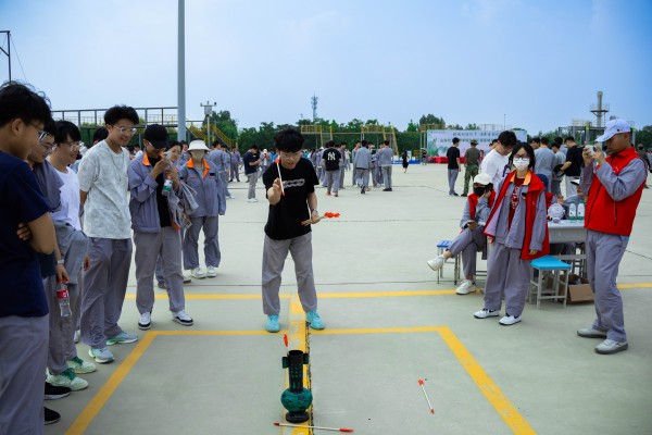 “旱地龙舟竞速赛”将现场气氛推向高潮。充气龙舟上,队员们肩并肩紧握把手,随着“一二、一二”的口号整齐划动。参赛队员刘长江赛后擦汗笑道:“划龙舟让我明白,团队默契比速度更重要,这和实训操作一个道理!”模拟龙舟竞渡场景的设计,让学生在速度与激情中锤炼团队协作精神。