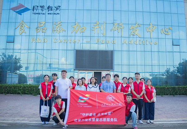 为响应国家号召,引导青年学子在实践中成长、以专业服务乡村振兴,8月22日,山东化工技师学院化学工程系繁星志愿服务队深入山亭区城头镇涝泉村及驻地企业山东同泰维润食品有限公司,开展“专业赋能筑安全,青春聚力促振兴”主题暑期“三下乡”社会实践活动,将化工专业知识转化为守护乡村安全的坚实力量。