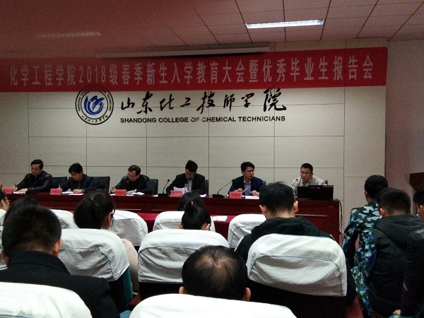 3月20日,化学工程学院隆重举行了2018级春季新生入学教育大会暨优秀毕业生报告会,学院副院长张继宏、崔世玉,教务处长匡照忠,化学工程学院2018级春季全体新生,优秀毕业生代表,化学工程学院全体专兼职教师、班主任参加了本次报告会。