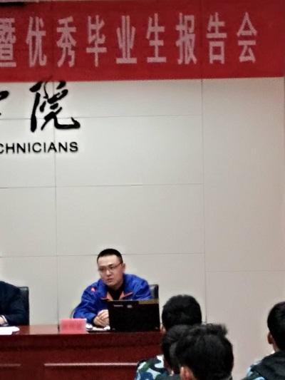 接着,来自联泓新材料的内主操兼副班长梁锡宝是我院12春季学生,他感触自身定位很重要,认清自己的能力,明确自己要干什么,能干什么,把学习放在首位。化工企业是技术高度密集型企业,这就要求同学们学习扎实的化工基本知识。介绍了自身从实习克服恐高开始,到外副操、内副操、内主操兼副班长的成长之路,提出了学校生活的团队合作和目标设定的重要性。尤其不要怕眼前吃亏,要勇于担当,善于积累。