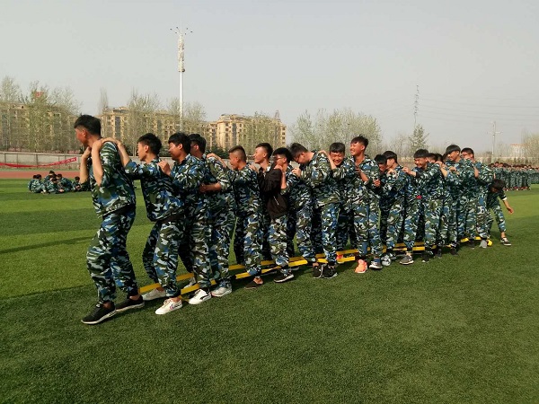 最后一个项目是珠行万里,在场的所有同学全部参与。一根一根的U型通道配合各色的小球,每名同学手拿一根通道,接成长龙,相互配合,使小球从一根通道滚到下一根通道上,依此类推,直至终点后将小球返回,如此往复,中间小球不能掉落,掉落者要表演精彩节目,趣味运动会进入高潮。操场上一片欢声笑语,同学们脸上洋溢着灿烂的笑容,绿色的草坪,蓝色的军装,长长的通道,小小的彩球,一副美丽的画卷展现在眼前,惟愿时光停驻,快乐常存。