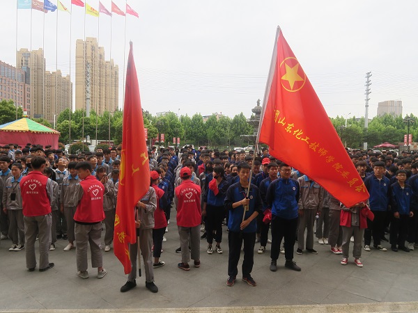下午1:30,国旗杆集合教官整队后,参加活动的班主任与学生一起步行前往,参加本次活动的人员有化学工程学院全体专、兼职教师和化学工程学院全体在校学生,共计641人,大家精神抖擞、纪律严明,长龙一般的队伍有序的行走在行人道上,俨然一道靓丽的风景线。