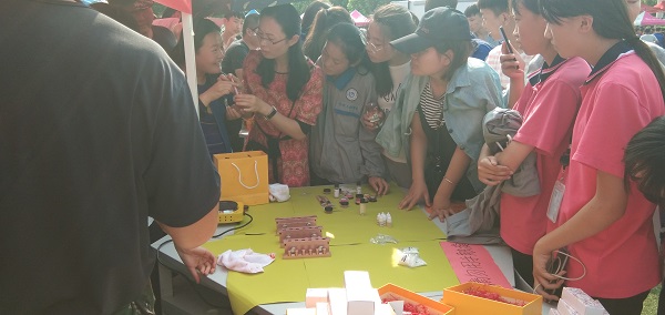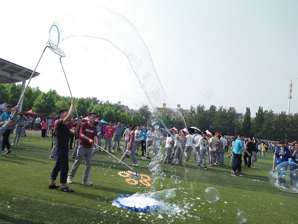 在此期间,为了宣传“化工让生活更美好”的理念,DIY手工制作布置了现场展台现场制作,更是吸引了大批学生前来观看,同时现场拍照发朋友圈集赞20个,即可免费领取手工皂一枚。该活动受到了同学们的热情追捧,拿到手工皂的同学们脸上充满了笑容,小心翼翼的存放,喜爱之情溢于言表。为了生动形象的展现我们自制洗洁精功能的强大,特意举办了泡泡秀小游戏,参与游戏的同学络绎不绝,直到散场还有很多同学依依不舍,还想再次体验。