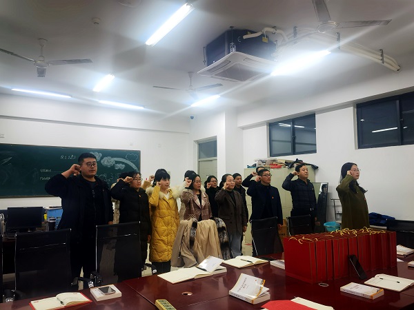 接着,组织委员张琳琳带领党员重温了入党誓词。铮铮誓言,拳拳红心,同志们仿佛又回到了自己的入党之日宣誓现场,重温初心,坚定决心,随时准备为党和人民牺牲一切。
