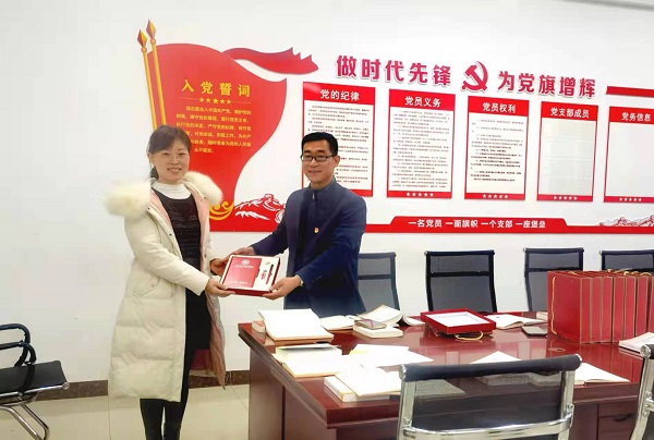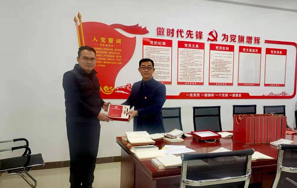 随后,李书记为每位党员发放了政治生日礼物。一枚党章、一本笔记、一支笔,这是党员身份的象征,更是对党员同志们发挥先锋模范作用的督促。