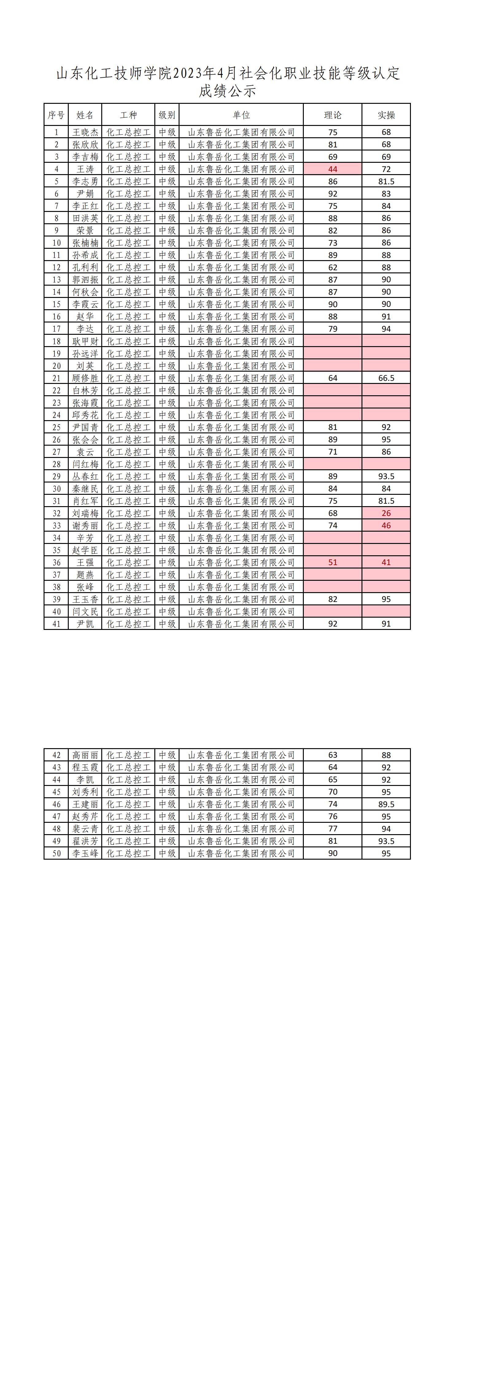 | 2023年4月鲁岳化工职业技能等级认定成绩公示 |
