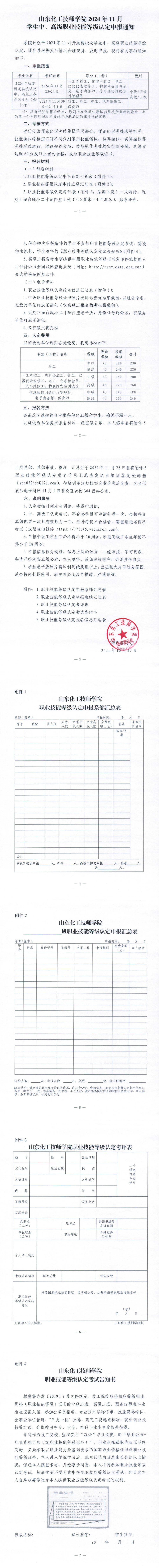 山东化工技师学院2024年11月学生中、高级工职业技能等级认定申报通知