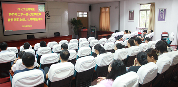 7月4日—5日,学院举办2023年工学一体化教学改革暨教师职业能力大赛专题培训。副院长崔世玉出席培训会议,教务处、教研督导处全体人员,各系部主任、分管教学副主任,各教研室主任及45岁以下专兼职教师分别通过线下、线上在高铁新区报告厅和学院路校区报告厅参加培训。