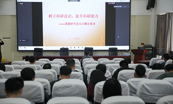 4月20日下午,学院通过线上腾讯会议举办课题研究专题培训。山东省技工教育教学督导员杨琳教授受邀作了主题为《树立科研意识,提升科研能力——课题研究基本环节及要求》的讲座。高铁新校区全体专兼职教师在化工楼A323报告厅集中接受培训,居家办公教师通过线上教研交流群登录腾讯会议接受培训。教研督导处处长赵莉主持讲座。
