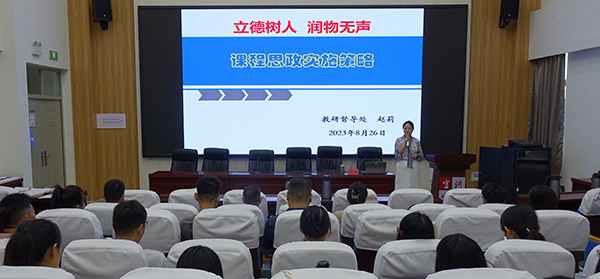 8月25—26日,学院在高铁新区校区报告厅举办2023年度新教师培训班,副院长崔世玉出席开班仪式并讲话,教研督导处处长赵莉主持会议,教务处、德育工作处、各系部主要负责人参加会议,秋季学期新入职教师参加培训。