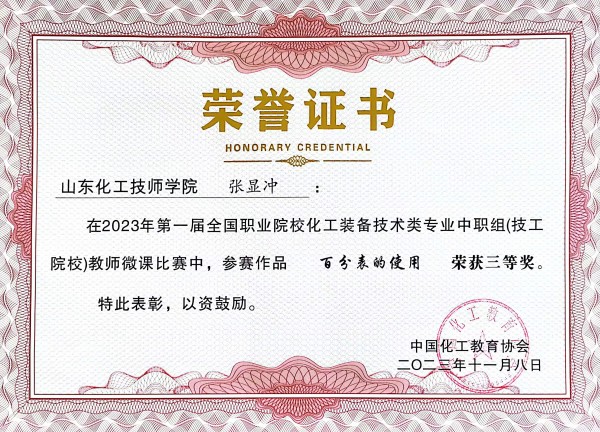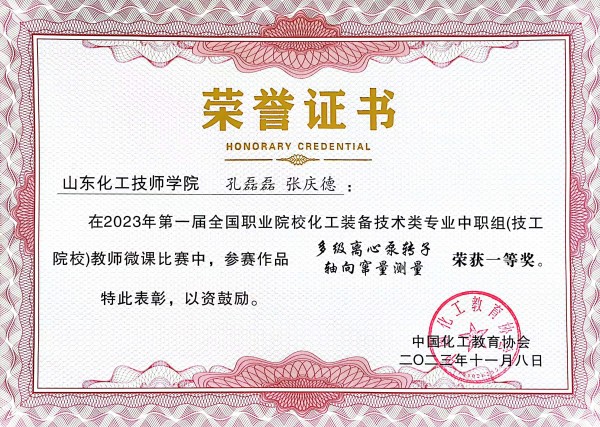 近日,中国化工教育协会公布了2023 年第一届全国职业院校化工装备技术类专业教师微课大赛获奖名单,我院孔磊磊、张庆德团队获得中职组一等奖;王凡、孙兰强、马新迎团队和李凯、赵艳艳团队获得中职组二等奖;张显冲老师获得中职组三等奖。