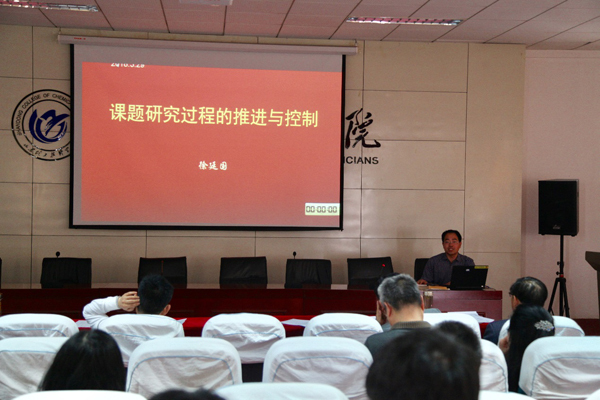 教务处匡照忠处长宣布立项课题名称、主持人,介绍课题专家后,各课题主持人向大家陈述开题报告。参与此次开题的课题有我院在山东省人力资源和社会保障厅立项的4项课题,分别为窦锦民主持的《化工工艺专业产教融合 “教学工厂”建设研究》(RSJY2017-Y051)、徐志勤主持的《人社部化工工艺专业一体化课程教学改革试点建设实践研究》(RSJY-Y052)、刘亚群主持的《技工院校炼油操作一体化课程的开发研究》(RSJY2017-Y053)、孔磊磊主持的《技工院校“三化合一”育人模式下军事化管理实践与研究》(RSJY2017-Y054);在中国职协立项的5项课题,分别为马洪光主持的《技师工作站运行、管理模式研究》(2017012)、许芝平主持的《基于校企合作模式的跨境电商实训基地建设研究》(2017047)、崔世玉主持的《技工院校化工工艺专业工学结合一体化技能人才培养模式研究》(2017104)、徐廷国主持的《3D打印技术应用专业人才培养标准及一体化课程开发的研究》(2017117)、苏军生主持的《技工院校(化工行业)毕业生薪酬水平调查》(2017121);在山东省青年教师教学研究学术委员会立项的2项个课题,分别为白磊磊主持的《环境保护与检测专业高技能人才培养策略研究》(18SDJ057)、 朱静山主持的《集散控制系统技术与应用课程资源建设与应用研究》(18SDJ058)。