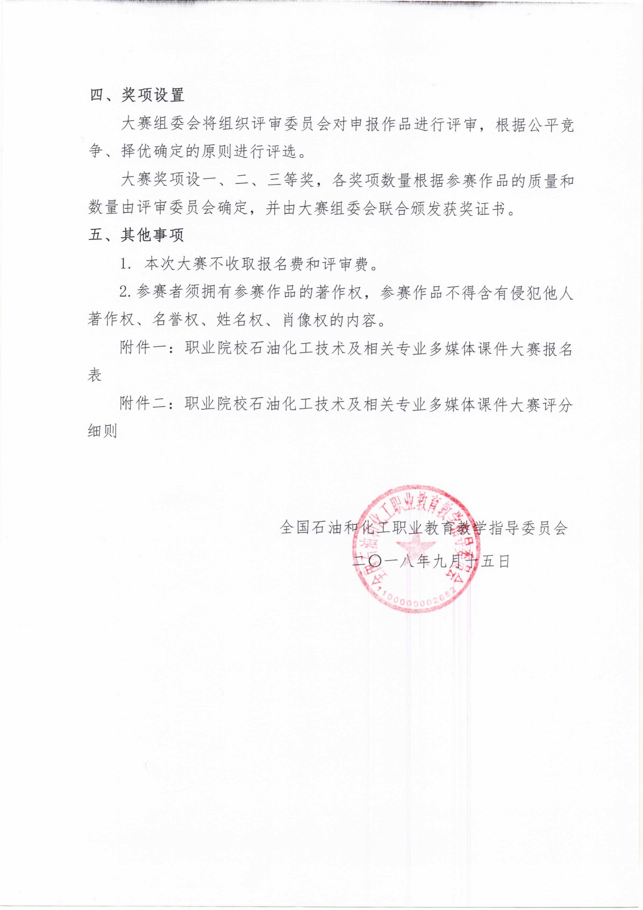 关于举办2018年职业院校石油化工技术及相关专业多媒体课件大赛的通知