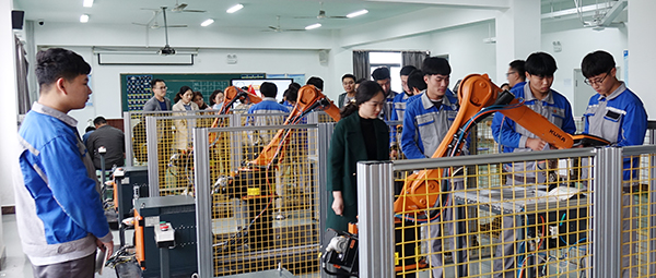 机械工程系党玉倩老师的机器人操作中的《流程控制指令》,在机器人实训室创设京东机器人物流分拣中心情境下导入工作任务,各小组讨论制定任务实施方案及程序架构,课前通过微课、云班课获取信息,通过流程控制指令中的如果IF指令在不同按钮按下的情况下,操作机器人完成不同轨迹的运动,教学效果较好,各组都圆满完成工作任务。