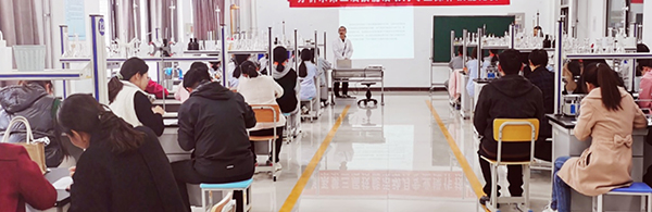 工业分析与检测系秦芳芳老师在滴定分析实训室讲授公开课《硝酸银标准溶液的配制》,涉及情境描述、明确任务、任务准备、任务实施、总结反馈等环节,采用一体化教学模式,以工作页为载体,充分发挥学生主体性,让学生在学中做、在做中学。