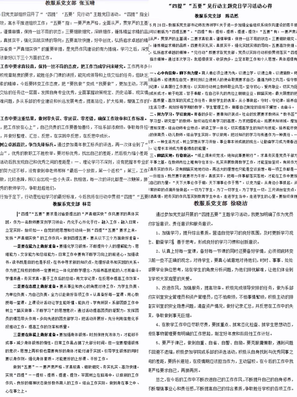 5月28日下午,教育与公共服务系党支部组织开展“‘四提’‘五要’见行动”和“学习贯彻省第十二次党代会精神”主题党日学习活动。
