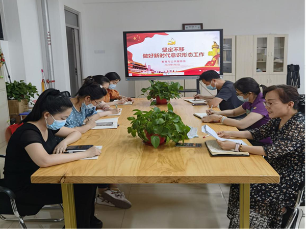 而后党员和教师们认真学习了坚定不移做好新形式下的意识形态工作。意识形态决定着一个国家、一个政党的性质,决定着举什么旗、走什么路这一根本问题,是为国家立心、为民族立魂的工作。因此,我们要系统规划和全面推进意识形态工作。举旗定向、凝心铸魂。站在“两个一百年”奋斗目标的历史交汇点上,我们党坚持把马克思主义基本原理同中国具体实际相结合、同中华优秀传统文化相结合,立民族文化之根,铸民族精神之魂,拓文明发展之道,用文化之光照亮复兴之路,使全体人民在理想信念、价值理念、道德观念上紧紧团结在一起。始终用党的创新理论武装全党、教育人民、指导实践,深化马克思主义理论研究和建设,推进中国特色哲学社会科学学科体系、学术体系、话语体系建设。