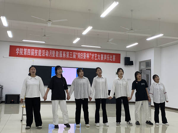 4月19日下午,阵阵嘹亮的歌声从声乐实训室传出,学院第四届技能活动月暨教服系第三届“向日葵杯”才艺大赛声乐比赛决赛拉开帷幕。本次比赛包括独唱、合唱两项内容展示,由教育与公共服务系音乐技能课教师担任评委。