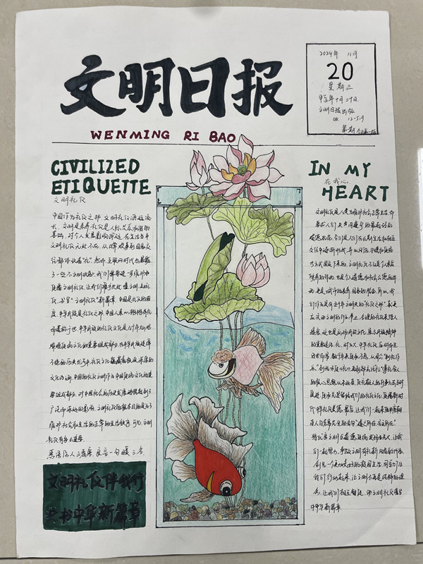 为贯彻落实学院《学生文明行为提升专项行动实施方案》,培养学生良好行为习惯,全面提升学生文明素养,营造文明和谐的校园育人氛围,我系于近日举办了“文明礼仪在我心”手抄报评比活动。