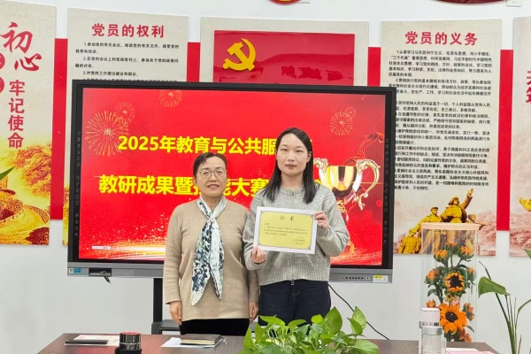 为凝聚教学动能,彰显先进示范力量,12月11日下午4时,教育与公共服务系在党员活动室举行2025年教研暨技能大赛表彰活动。系部全体教师齐聚一堂,共享教研成果,同贺师生佳绩。