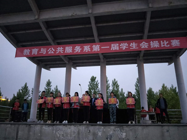 为了庆祝建团97周年暨“五四”运动100周年,继承和弘扬伟大的“五四”精神,5月8日,教育与公共服务系组织了第一届会操比赛,全系20个班级近700名学生参加了比赛。