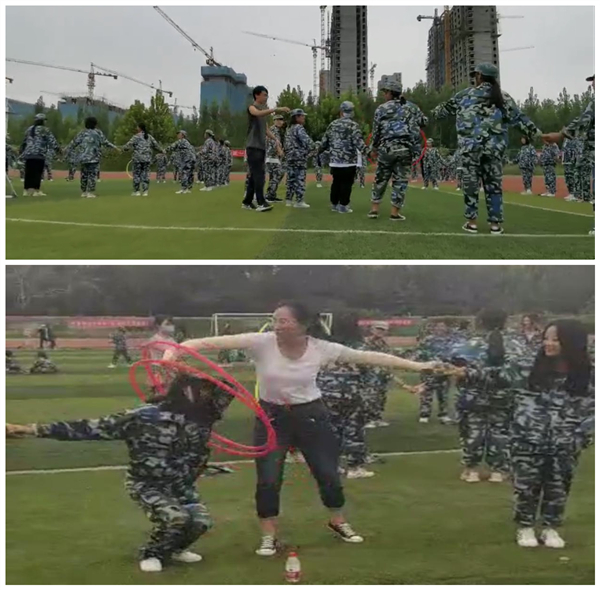 “左脚右脚左脚”一声声、一步步,师生齐上阵,在不知不觉中增强了团结合作的意识。