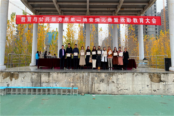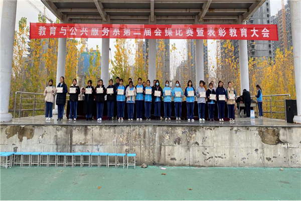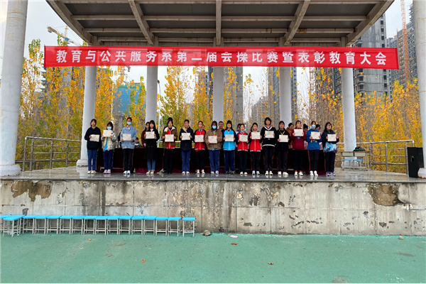 伴随着霜风,沐浴着冬韵。11月19号下午教育与公共服务系在操场上举行第二届会操比赛暨表彰教育大会,系部领导、任课教师以及各班班主任参加会议。本次比赛共由十三个方队组成,赛场上同学们激情飞扬,拿出最好的状态接受这场属于青春的检验。