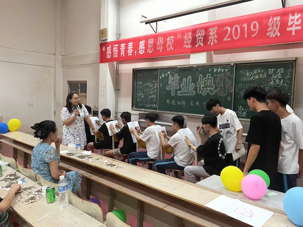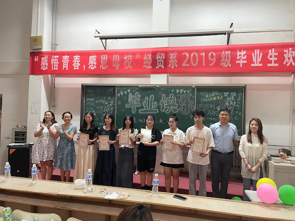 9月11日晚,经济贸易系在教学楼301阶梯教室举办了2019级毕业生欢送会。德育工作处处长许芝平、经贸系主任刘建成及部分教师出席活动。