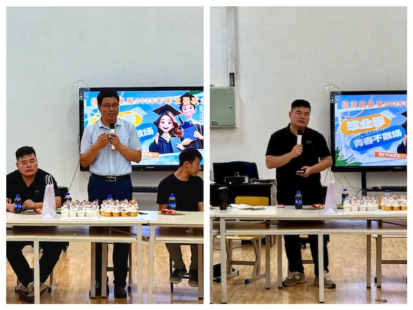 联欢会上,系主任刘建成以感恩、责任、展望为毕业生们送上诚挚的期许与美好的前程祝愿。随后,班主任赵东老师为同学们献上饱含关怀与勉励的临别寄语,字字句句传递师长的殷切期望。 接下来是轻松愉快的游戏与表演环节,毕业生们纷纷登台,展示才艺。节目精彩纷呈,现场笑声与掌声不断,洋溢着同窗情深的温馨与离别在即的不舍。 整场联欢会氛围温馨而热烈,为毕业生的校园时光画上了一个充满情谊的句点,留下了珍贵的共同回忆。