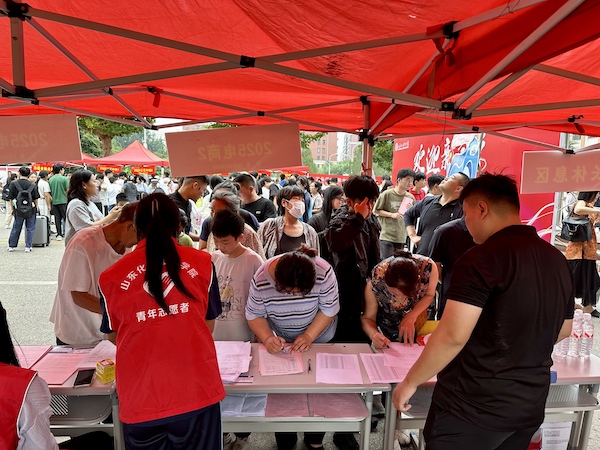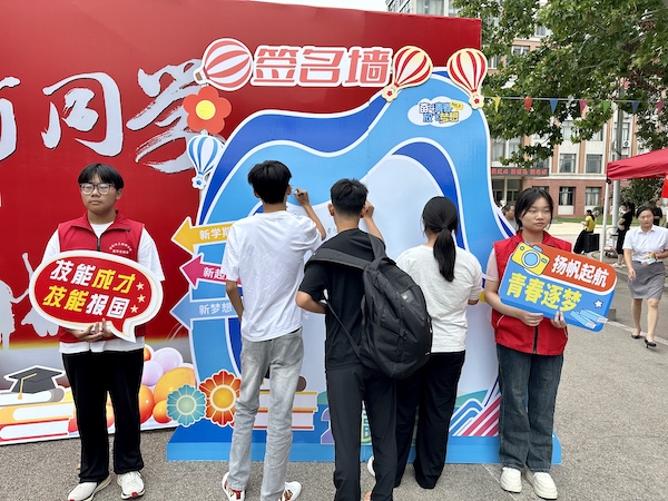 经贸系新生接待处,班主任们早早在报到点等候,认真细致地核对新生报名材料,耐心解答各种疑问,与家长亲切交流,用专业和热情帮助新生消除“生分”,迅速融入山东化工技师这个大家庭。