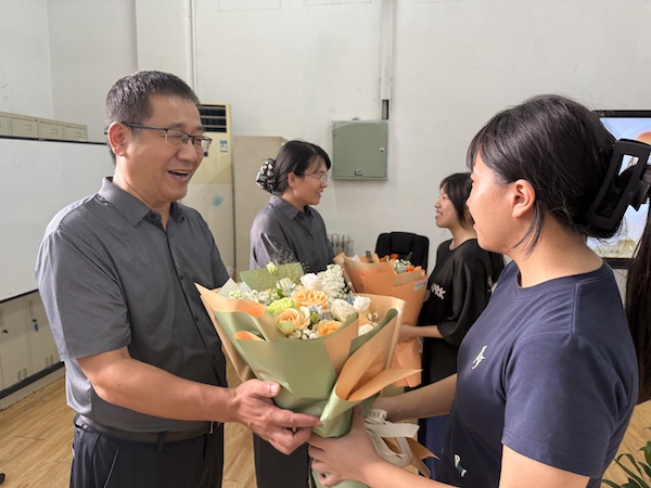 9月10日上午,学院纪委书记苏友华到访经贸系教学一线,向高层次人才代表表达慰问。苏书记代表学院向教师代表们送上鲜花,亲切慰问,详细了解教师们的工作、生活情况,倾听他们的心声与需求,并鼓励大家继续发扬爱岗敬业、无私奉献的精神,为学院发展贡献更多智慧和力量。