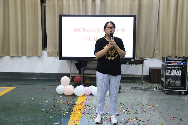 欢送会的尾声,毕业班班主任张振老师、我系团支部书记高瑞先老师、副书记付卿扬老师分别向同学们送上毕业祝福。