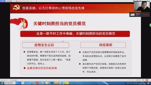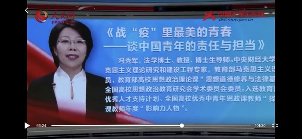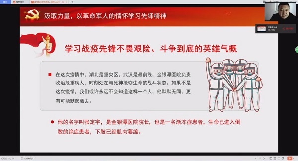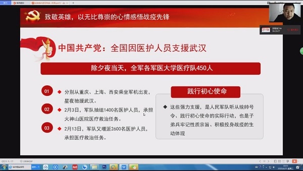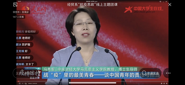 全体团员在线共同学习由中央财经大学的冯秀军教授主讲的《战“疫”里最美的青春--谈中国青年的责任与担当》。