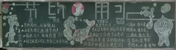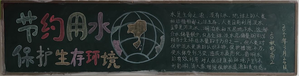 一年一度的世界水日在3月22日如期而至,为了能更好的向同学们宣传有关节水方面的知识,让更多的同学能加入到保护水资源、保护环境的行列中来,经贸系团总支特开展“节约用水 保护生存环境”主题板报设计大赛,倡导节约用水观念,建设文明学校,围绕增强节水习惯,树立节水为荣、浪费可耻的正气,倡导广大同学们从小事做起,从个人做起,努力把我校建成节水型学校。