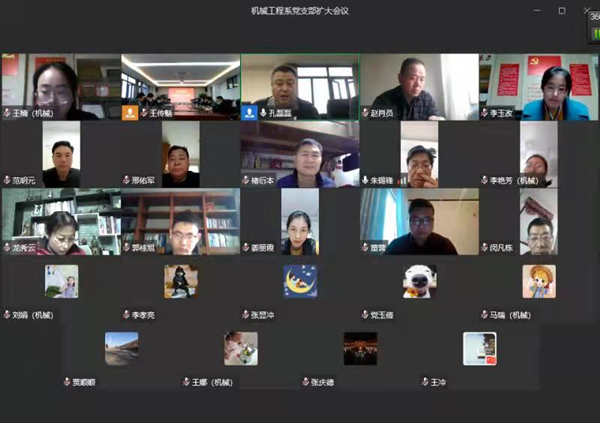 会议的内容主要有:1、机械工程系党支部书记刘海东领学山东省委组织部《关于切实发挥党组织和党员作用坚决打赢新冠肺炎疫情防控阻击战的通知》。2、机械工程系主任孔磊磊就疫情期间的学生管理问题,提出如何在严峻的疫情形势下,加强管理的同时关心关爱学生的心理健康。3、副主任马洪光指出老师应该更好的使用直播平台满足全体学生完成学习任务,并对线上教学提出新要求。3、马瑞老师针对近两天的网络教学提出了好的建议与小技巧。4、封校管理期间,学院更是对校内的学生免费提供馒头、米饭、热饮用水等生活必需品,每天一个水果,师生早晚餐的质量也得到了提升。