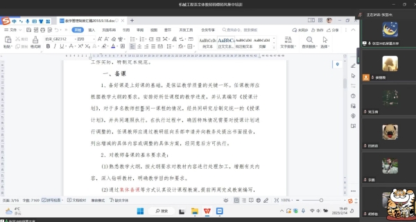 本次会议主要包括以下几个方面:1、姜丽霞老师领学《高等学校教师职业道德规范》。2、张显冲老师领学《山东化工技师学院教师教学规范》。3、机械工程系副主任李厚强领学《教学违纪与教学事故认定及处理办法》。4、机械工程系主任孔磊磊对全体专兼职教师针对师德师风建设提要求,要求全体教师以身作则,严谨教学。5、机械工程系党支部书记刘海东做总结讲话,提醒教师要时刻谨记不断提高自身的道德修养,提升自身的人格魅力。