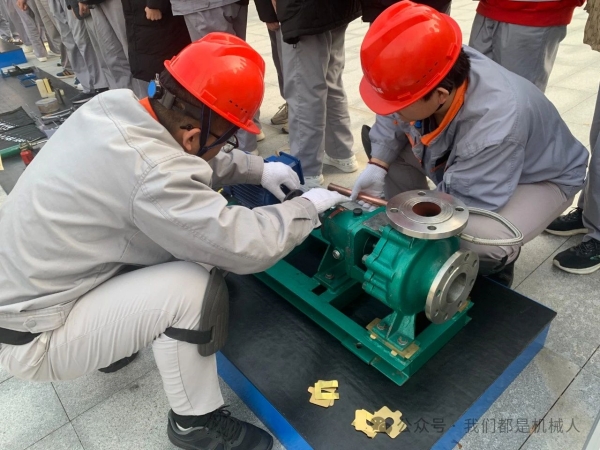 机泵拆装是机修钳工赛项的重要组成部分,现场进行联轴器找正、叶轮径向跳动量测量的演示,并展示了化工泵检修的工量器具和先进的检测仪器。