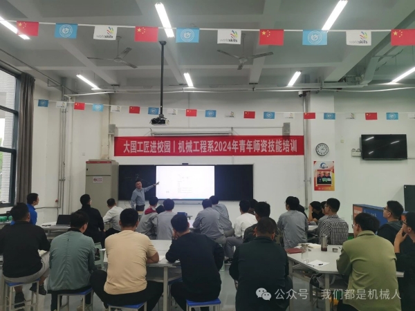 10月17日,机械工程系开展了“大国工匠进校园|2024年青年师资技能培训活动,邀请2021年“大国工匠”李震做培训演讲。机械工程系主任孔磊磊出席并主持宣讲活动,机械工程系全体青年教师和机修检修钳工大赛培训班学生参加培训。