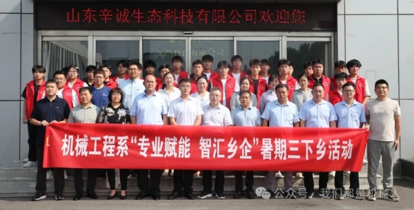 8月23日上午,机械工程系“匠心”志愿服务队师生深入山东辛诚生态科技有限公司,参观生产车间,观摩智慧生产控制中心,聆听企业专家介绍,了解产品生产流程,惊叹产品的高科技含量;期间,政校企三方举办 “科技赋能 智汇乡企”乡村振兴座谈会,详细交流专业建设、企业需求、政策服务等多层面内容,达成了长期合作意向,搭建了政校企合作新渠道。