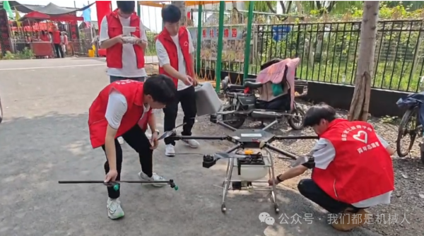 志愿服务队师生在地方团委领导的陪同下,发挥无人机专业操控技术优势,进入九龙湾猕猴桃采摘园,向现场工作人员,演示植保无人机喷洒技术,为将来采摘园植保喷洒农药、洒水等多项合作帮扶项目。与协助拍摄采摘园宣传视频,实践“青耘中国 直播助农” 现场直播活动。