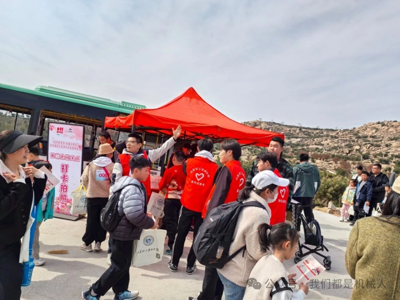 "匠心"志愿服务队赴枣庄市山亭区冯卯镇,开展"诗书趁年华 步履丈桃花"主题志愿活动。在桃花岩马湖亲子徒步定向挑战赛中,20余名志愿者身着红马甲,承担路线指引、安全维护、环保宣传等工作,保障百余组家庭顺利完成古村探秘、诗词接龙等文化打卡任务。他们同步开展"学雷锋"公益服务,清理山道垃圾并向游客宣讲生态保护知识,以专业技能践行新时代工匠精神,实现志愿行动与文旅体验的深度融合。活动既让亲子家庭在青山碧水间感受诗书文化,也通过青春力量赋能乡村振兴。